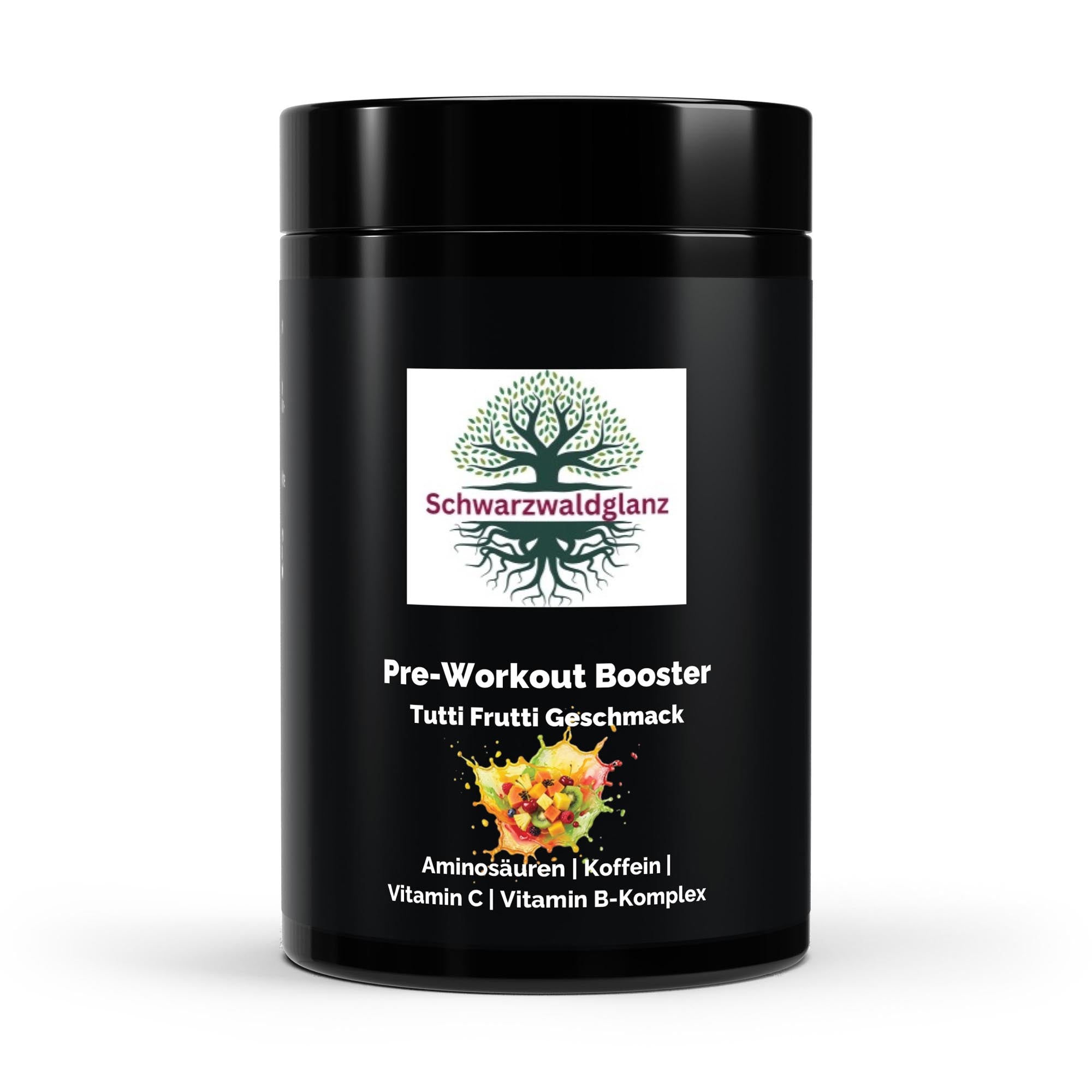 Steigere deine Trainingsleistung mit dem Pre-Workout Booster Tutti Frutti von Schwarzwaldglanz. Die Formel vereint funktionelle Aminosäuren, hochwertiges Creatin, Koffein, Vitamin C und ein vollständiges B-Vitamin-Spektrum – entwickelt, um dir vor jeder intensiven Einheit Energie, Fokus und mentale Klarheit zu liefern.