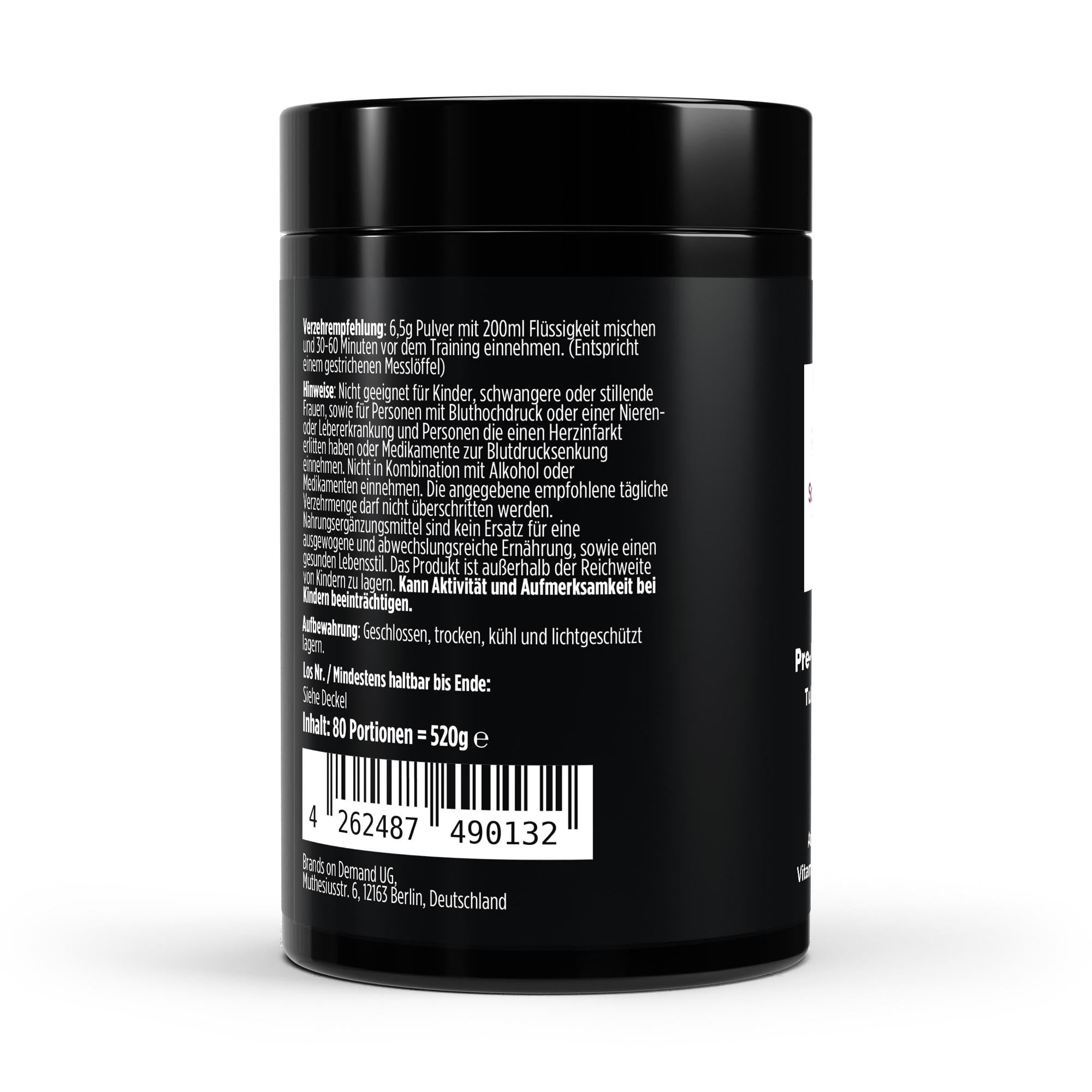 6,5 g Pulver in Wasser einrühren und vor dem Training trinken.