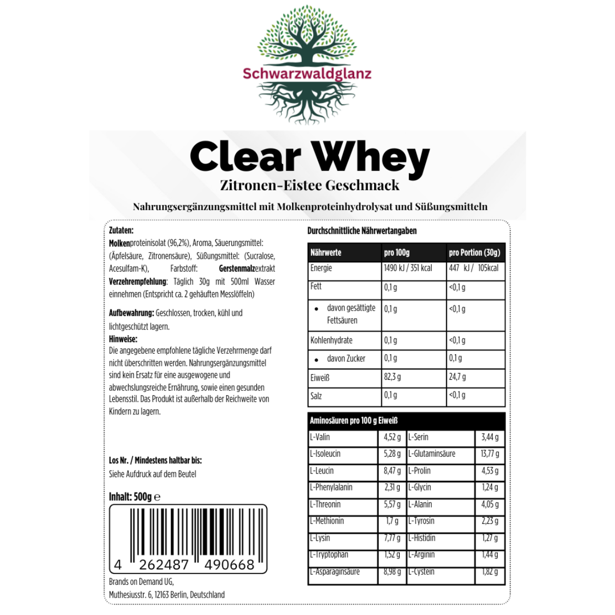 Entdecke die erfrischend andere Art, dein Protein zu genießen: Das Cross Flow mikrofiltrierte Whey Isolat von Schwarzwaldglanz bringt dir maximale Reinheit, ultra leichte Löslichkeit und einen klaren Ice Tea Lemon Geschmack, der sich mühelos in deinen Alltag einfügt.
